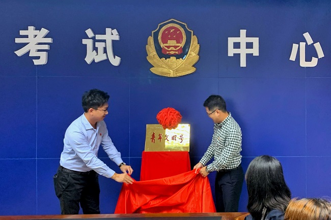 揭牌儀式上,創(chuàng)建小組成員代表首先分享了上橋考場青年文明號創(chuàng)建成果。隨后,袁沛霖書記正式宣讀了《關于命名2018年度市青年文明號的決定》,并與號長林創(chuàng)業(yè)共同揭牌。