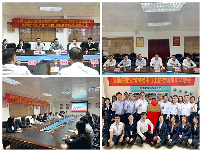 11月28日上午,交通實業(yè)公司駕考中心上橋考場“2018年度東莞市青年文明號”揭牌儀式在上橋考場舉行。東城街道團委書記袁沛霖,副書記吳伯珅,交通實業(yè)公司黨總支部副書記、總經(jīng)理莫松堅,黨總支部副書記、監(jiān)事劉拓瑜,駕考中心黨支部書記、總經(jīng)理李敬超,公司團支部書記、駕考中心副總經(jīng)理周良,以及創(chuàng)建小組和考場相關人員參加了儀式。