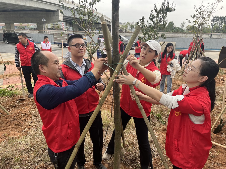 隨后,參加人員前往芙蓉產(chǎn)業(yè)中心開展植樹活動(dòng),黨員們熱情高漲、干勁十足,現(xiàn)場一片忙碌的景象。大家團(tuán)結(jié)協(xié)作、配合默契。經(jīng)過通力合作,一棵棵樹苗整齊地挺立在綠地上,與金燦燦的黨徽、鮮紅的黨員志愿服相映形成一道亮麗的風(fēng)景線。下來,我司將持續(xù)發(fā)揮基層黨組織戰(zhàn)斗堡壘作用和黨員干部先鋒模范作用,引導(dǎo)黨員干部當(dāng)好“綠美莞邑”的參與者,探索開展多形式黨建共建活動(dòng),為推動(dòng)“百千萬工程”貢獻(xiàn)更大力量。