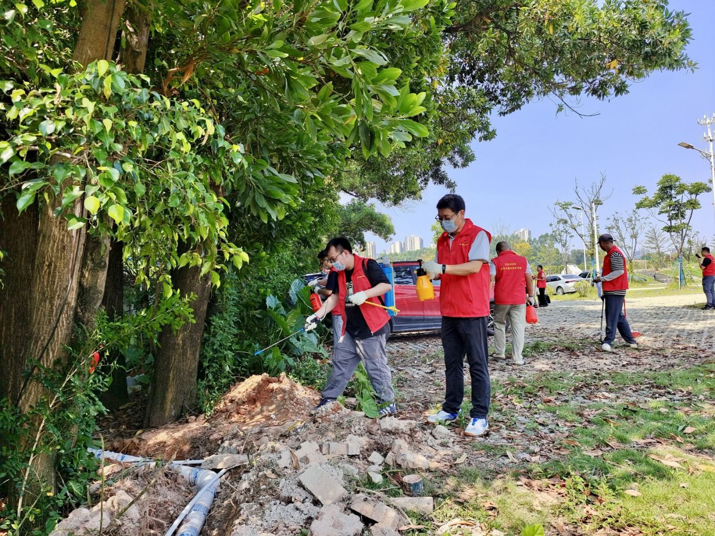公司機(jī)關(guān)支部組織黨員職工在交通實(shí)業(yè)公司辦公大樓、寮步橫坑便民停車場(chǎng)開展蚊媒傳染病防控志愿服務(wù)活動(dòng),現(xiàn)場(chǎng)重點(diǎn)聚焦房前屋后、草叢、下水道溝渠等高風(fēng)險(xiǎn)區(qū)域,對(duì)清理區(qū)域進(jìn)行全方位藥物噴灑,全面消滅易孳生蚊蟲的衛(wèi)生死角,并通過在辦公區(qū)域、飯?zhí)?、停車?chǎng)出入口張貼海報(bào)等方式,向市民及員工普及蚊媒傳染病知識(shí),以實(shí)際行動(dòng)筑牢聯(lián)防聯(lián)控的嚴(yán)密防線。