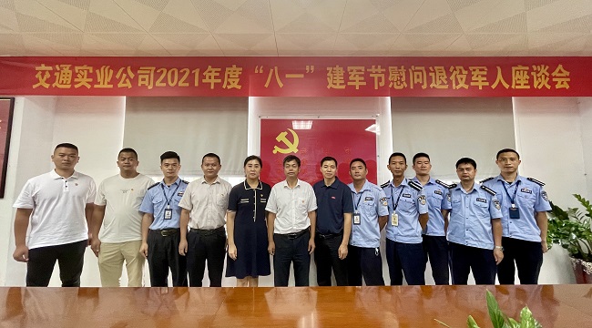 在“八一”建軍節(jié)來臨之際,為扎實做好慰問退役軍人的工作,7月30日下午,交通實業(yè)公司組織召開2021年度“八一”建軍節(jié)慰問退役軍人座談會,交通實業(yè)公司黨總支部副書記、監(jiān)事張茂生、10名來自不同崗位的退役軍人代表、以及相關(guān)人員參加了活動。在座談會上,大家共同學習了習近平總書記在慶祝中國共產(chǎn)黨成立100周年大會上的重要講話精神,輪流分享了部隊服役經(jīng)歷、目前生活和工作等情況,對公司發(fā)展提出了意見建議,并互相送上了節(jié)日的祝福。期間,張茂生黨總支部副書記分享了他在大連海軍艦艇學院的學習經(jīng)歷和在南沙群島、湛江等地的海上軍旅生涯,以自身經(jīng)歷鼓勵大家要堅持學習,不斷提高自身工作能力,努力在本職崗位上發(fā)揮專長和優(yōu)勢,一如既往保持軍人吃苦耐勞、嚴守紀律的優(yōu)良品質(zhì),繼續(xù)傳承發(fā)揚部隊聽黨指揮、服務(wù)人民的優(yōu)良傳統(tǒng)。與會人員紛紛表示將在日后的工作中,恪盡職守、努力工作。通過此次活動,讓退役軍人感受到了公司的關(guān)懷和溫暖,營造了公司擁軍優(yōu)屬的良好氛圍。