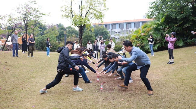 到達(dá)燕嶺濕地公園后,會(huì)員們沿著蜿蜒的水系漫步閑聊,不時(shí)用鏡頭記錄美好瞬間,感受青山綠水帶來(lái)的愉悅;隨后到燕嶺園營(yíng)地開(kāi)展團(tuán)建活動(dòng),通過(guò)熱身操、按摩操等互動(dòng),迅速點(diǎn)燃現(xiàn)場(chǎng)氣氛,并開(kāi)展了“請(qǐng)你不要到處摸摸”“蒙眼取水”“交叉接飛盤(pán)”等團(tuán)隊(duì)游戲。在游戲過(guò)程中,各組隊(duì)員相互鼓勁、配合默契,場(chǎng)外觀眾吶喊助威,掌聲和歡呼聲此起彼伏,現(xiàn)場(chǎng)洋溢著熱情和活力,有效增進(jìn)了相互之間的友誼和交流,受到了會(huì)員們的一致好評(píng)。