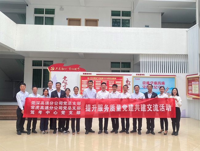 11月2日,駕考中心黨支部紀(jì)檢委員、監(jiān)事杜海星帶隊(duì)與莞深高速分公司黨總支部、?;⒏咚俜止军h總支部聯(lián)合開展提升服務(wù)質(zhì)量黨建共建交流活動(dòng),?;⒏咚俜止军h總支部組織委員、副總經(jīng)理羅澤南及相關(guān)黨員參會(huì)。