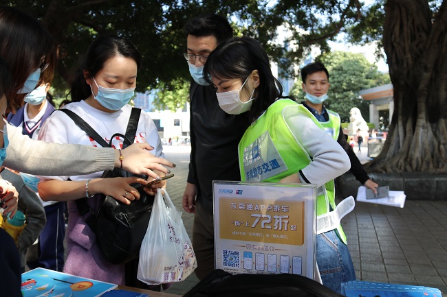活動(dòng)現(xiàn)場(chǎng),20多位工作人員兩人一組,在市人民公園南門停車場(chǎng)設(shè)立攤位,并在公園周邊及莞城商業(yè)中心附近積極宣傳推廣“東莞通”App以及“莞停車”微信公眾號(hào),現(xiàn)場(chǎng)邀請(qǐng)市民體驗(yàn)智慧停車,引導(dǎo)車主下載“東莞通”APP、關(guān)注“莞停車”微信公眾號(hào)并完成賬戶綁定,同時(shí)向積極參加的市民送出實(shí)用小禮品,現(xiàn)場(chǎng)氛圍十分活躍。
