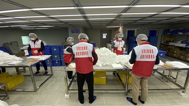 原來,志愿者們會根據(jù)支援企業(yè)的安排,靈活在不同凈化用品產(chǎn)線工作,即有的直接支援口罩生產(chǎn),有的則在其他產(chǎn)線工作,間接輔助熟練工人生產(chǎn)口罩。