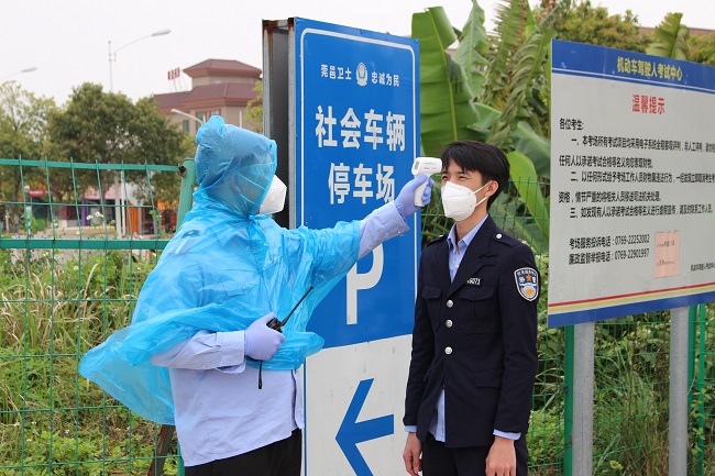 演練充分結合實際,模擬考場出現(xiàn)疑似患者后,開展人群疏散、聯(lián)系就診、現(xiàn)場消殺、人員隔離的突發(fā)情況。過程中,工作人員默契配合,規(guī)范處置,取得了預期效果。通過演練,工作人員積累了應對防控疫情的實踐經(jīng)驗,增強了防控的信心和決心。
